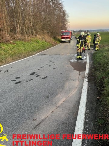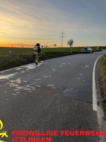 Am vierten Advent, den 21. Dezember 2025 wurde die Feuerwehr Ittlingen um 16:03 Uhr zu einer Ölspur auf die K2147 in Fahrtrichtung Sinsheim-Hilsbach alarmiert. Die Polizei hatte die Feuerwehr zur Verkehrssicherung gerufen, nachdem in einer S-Kurve ein Motorradfahrer aus unbekannten Gründen verunfallt war.