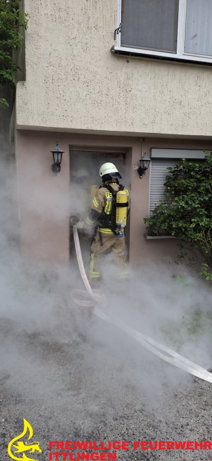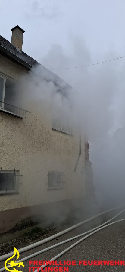 Dem zuerst mit dem Mehrzweckfahrzeug eintreffenden Einsatzleiter stellte sich die Lage dramatisch dar: Ein Wohngebäude stand aus bislang ungeklärter Ursache in Flammen, zwei Personen galten als vermisst und wurden im stark verrauchten Gebäude vermutet.