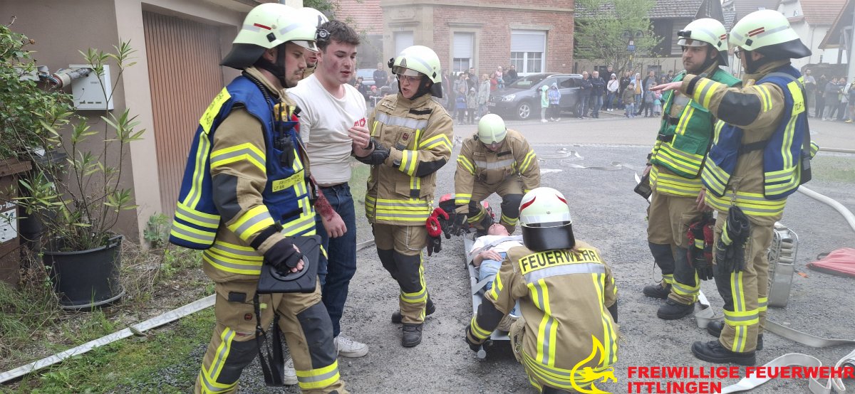 Am Samstag, den 26. April, fand die diesjährige Hauptübung der Freiwilligen Feuerwehr Ittlingen in Zusammenarbeit mit dem DRK Ortsverein Ittlingen statt. Pünktlich um 16 Uhr wurden die Einsatzkräfte per Funkmeldeempfänger und Sirene zu einem fiktiven Brandeinsatz in die Mühlgasse alarmiert. Zahlreiche interessierte Zuschauerinnen und Zuschauer hatten sich bereits vor Beginn an der Einsatzstelle eingefunden.