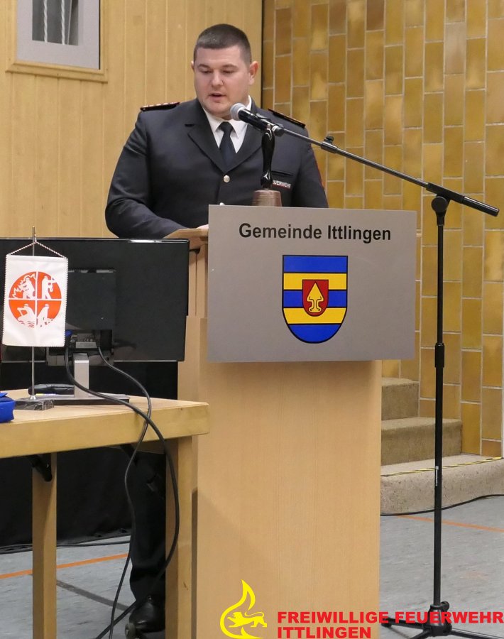 Er freue sich darüber, dass bei der heutigen Versammlung wieder Beförderungen und Übernahmen in den aktiven Einsatzdienst vorgenommen werden können. Deswegen werden sich die Aktivenzahlen wieder einmal nach oben korrigieren. Vor wenigen Jahren wurde der An- und Umbau des Gerätehauses abgeschlossen und heute werden so langsam die Spinde knapp. Dies zeige, dass man sich in Ittlingen um die Schlagkräftigkeit der Feuerwehr auch in Zukunft keine Sorgen machen muss. Er bedankte sich für die Aufmerksamkeit und wünschte allen Einsatzkräften stets eine gesunde Rückkehr von ihren Einsätzen.